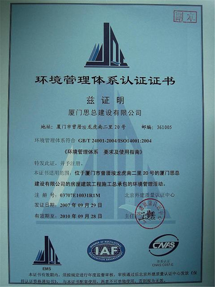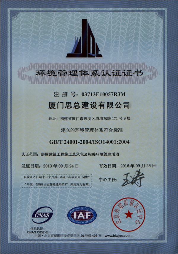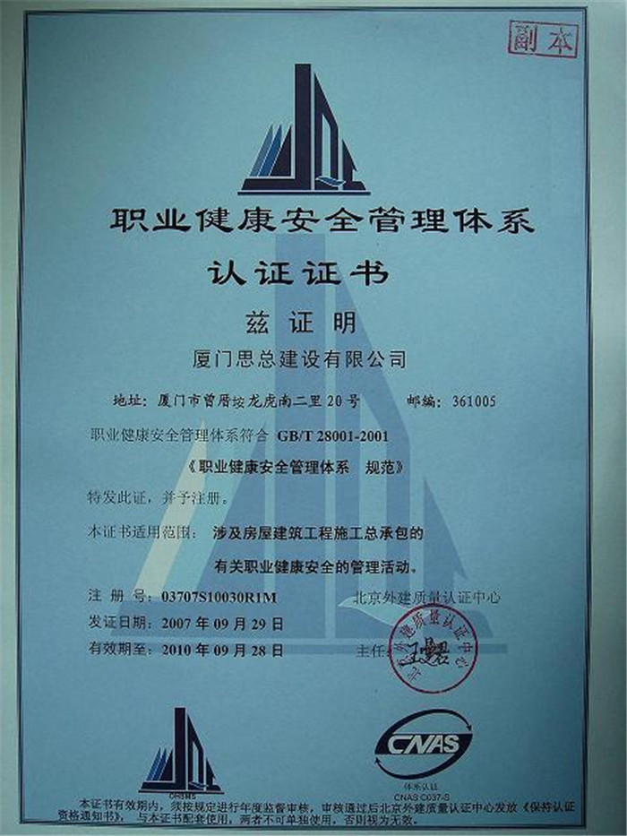 2013職業(yè)健康安全管理體系認(rèn)證證書
