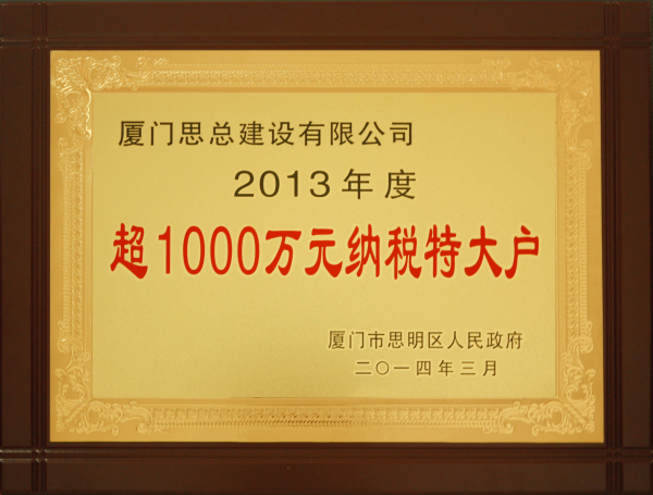 2013年度超1000萬(wàn)元納稅特大戶-思明區(qū)