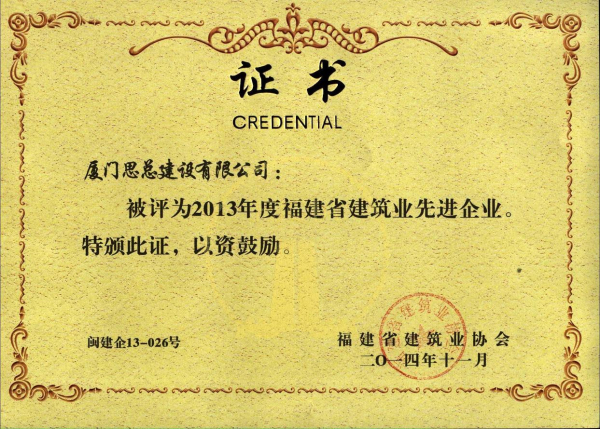 2013年度福建省建筑業(yè)先進(jìn)企業(yè)