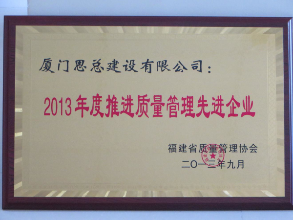 2013年度推進(jìn)質(zhì)量管理先進(jìn)企業(yè)
